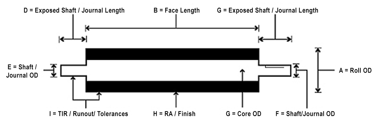 For quotes on any roll, please fill out as much information as possible. If needed, fax, email or mail any prints or instructions. The color black below indicates thickness of cover needed. For example: Chrome, Urethane, Ceramic, Tungsten Carbide, FEP/PFA, etc.